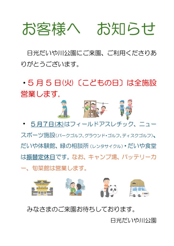 いつも日光だいや川公園をご利用いただき、ありがとうございます。