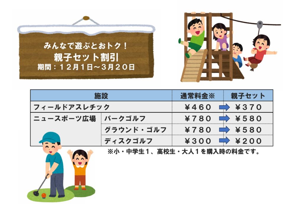 ・フィールドアスレチック、ニュースポーツ施設ではお得な「親子チケット」を販売開始いたします!