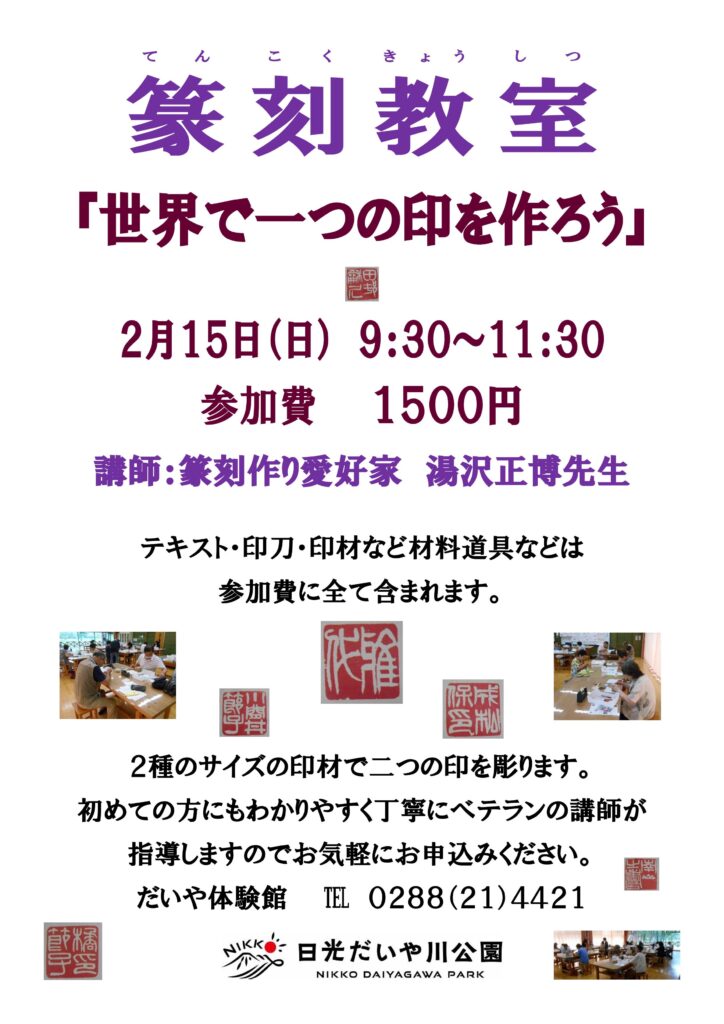 だいや体験館より 篆刻教室開催のお知らせ